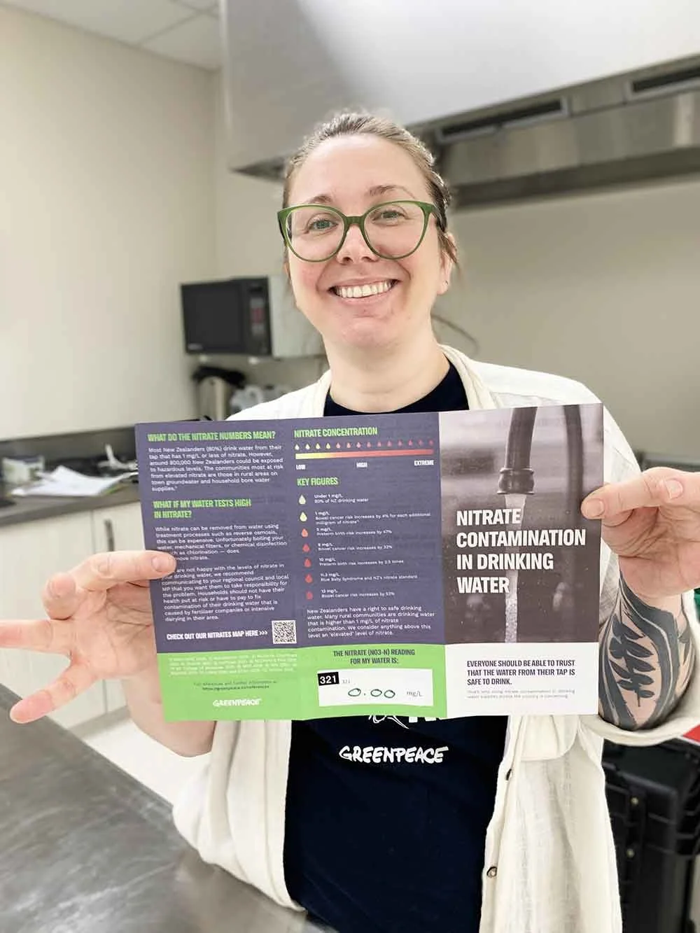 Greenpeace visited Waimate in November 2025, inviting locals to bring in water samples for testing.